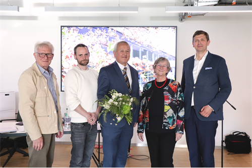 Sowohl die Präsidentin der HSD, Prof. Dr. Edeltraud Vomberg wie auch der Vorsitzende des Hochschulrates, Herbert K. Meyer, und der Vorsitzende des Senats, Prof. Dr. Olexiy Khabyuk, gratulierten dem neuen Vizepräsidenten herzlich und wünschten ihm für seine weitere Amtszeit ein gutes Gelingen.